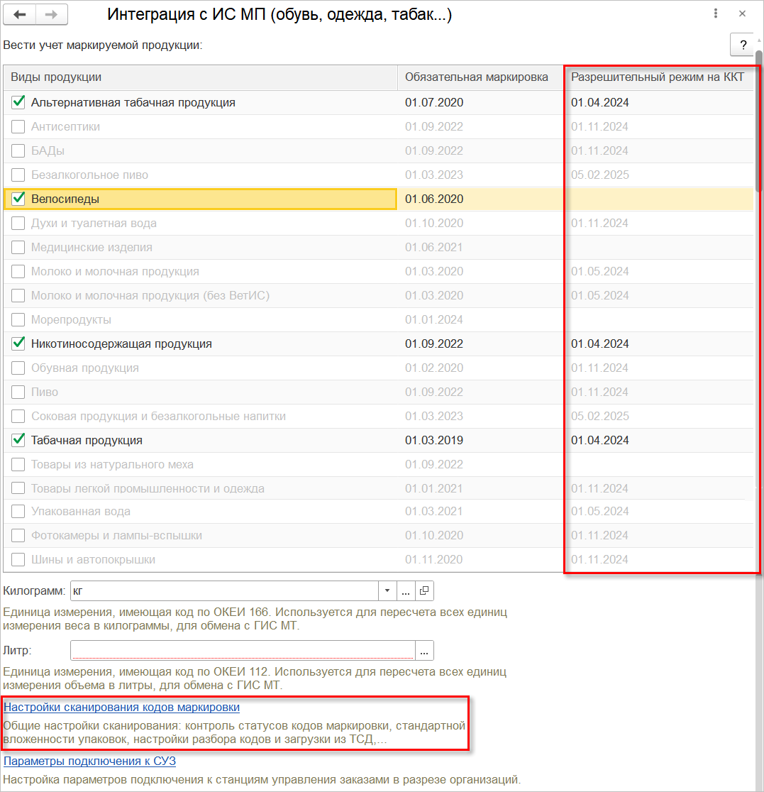 недоступны для редактирования настройки контроля в разделе "Настройки сканирования кодов маркировки".