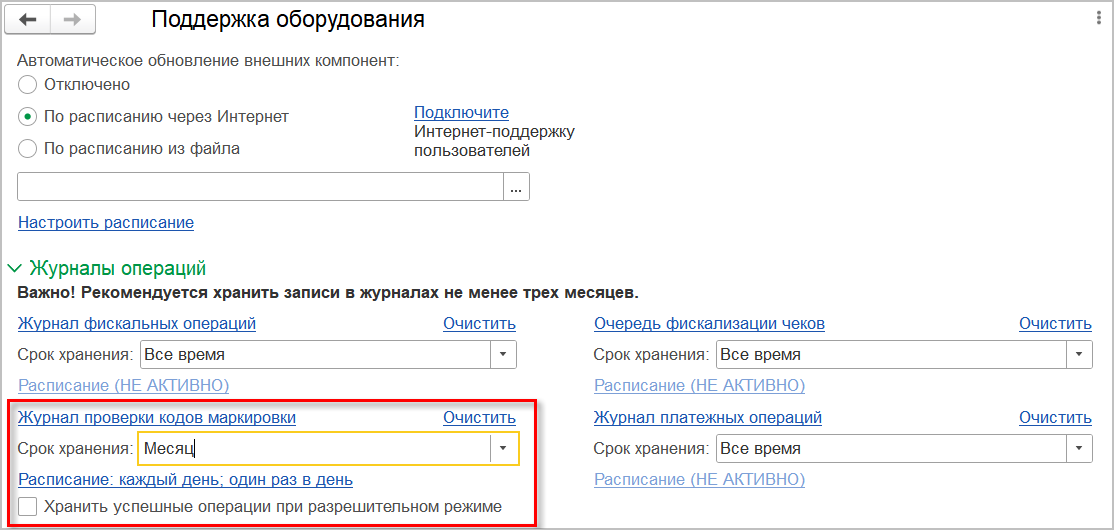 В панели администрирования подключаемого оборудования добавлен журнал операций проверки кодов маркировки.