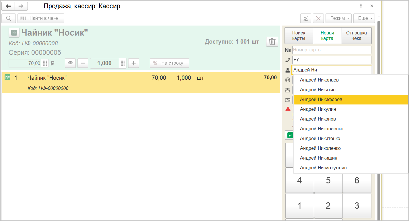 Добавлен подбор ФИО по классификатору. Упростили заполнение ФИО при заполнении клиента в РМК в момент регистрации новой карты. При вводе первых букв программа предложит доступные варианты имени и фамилии. Опция позволит избежать ошибок заполнения и сократить время на ввод данных.