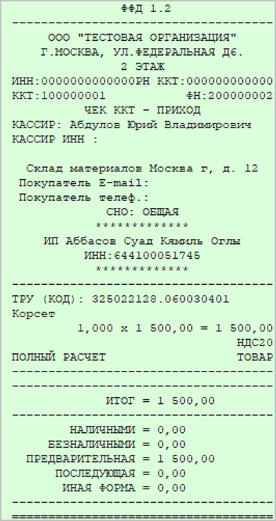 Можно проверить сертификат и совершить оплату с видом расчета "Предоплата", либо "Предоплата 100%", если покупка оплачена полностью сертификатом без доплат.