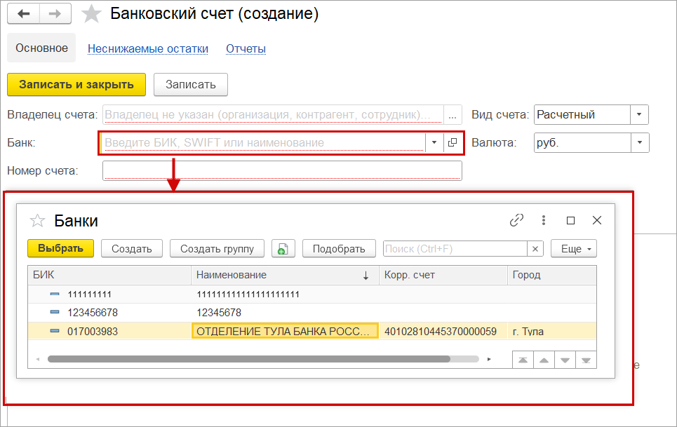 Создавать банковский счет стало удобнее. Теперь при создании банковского счета не нужно искать добавленный банк из классификатора. Список банков автоматически позиционируется на новом банке, остается только подтвердить выбор.