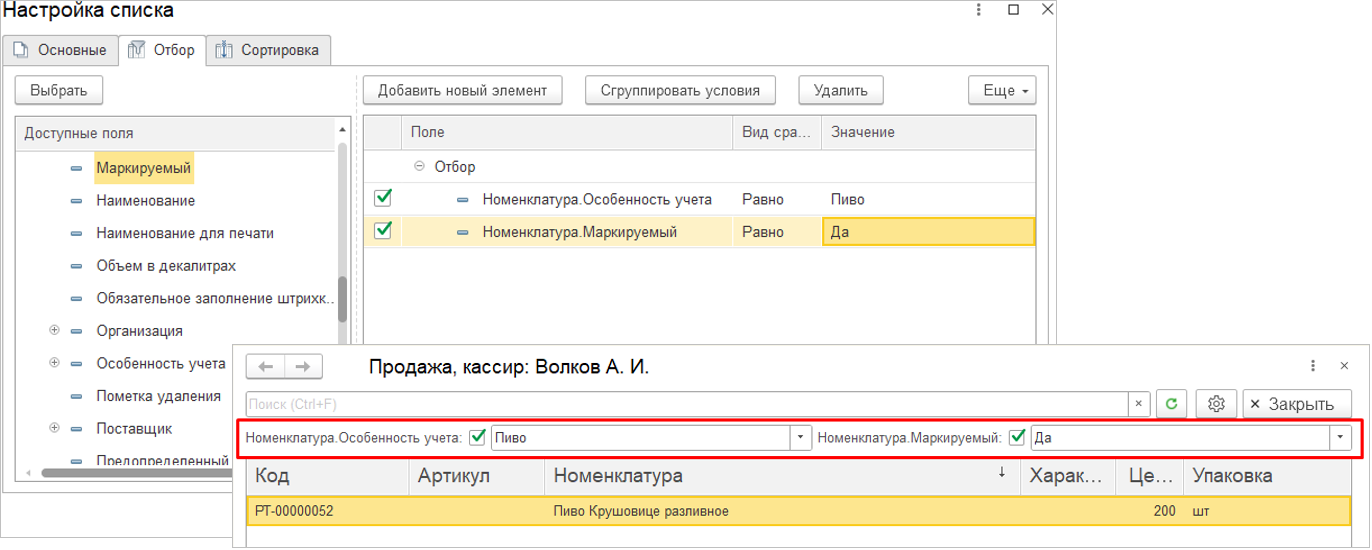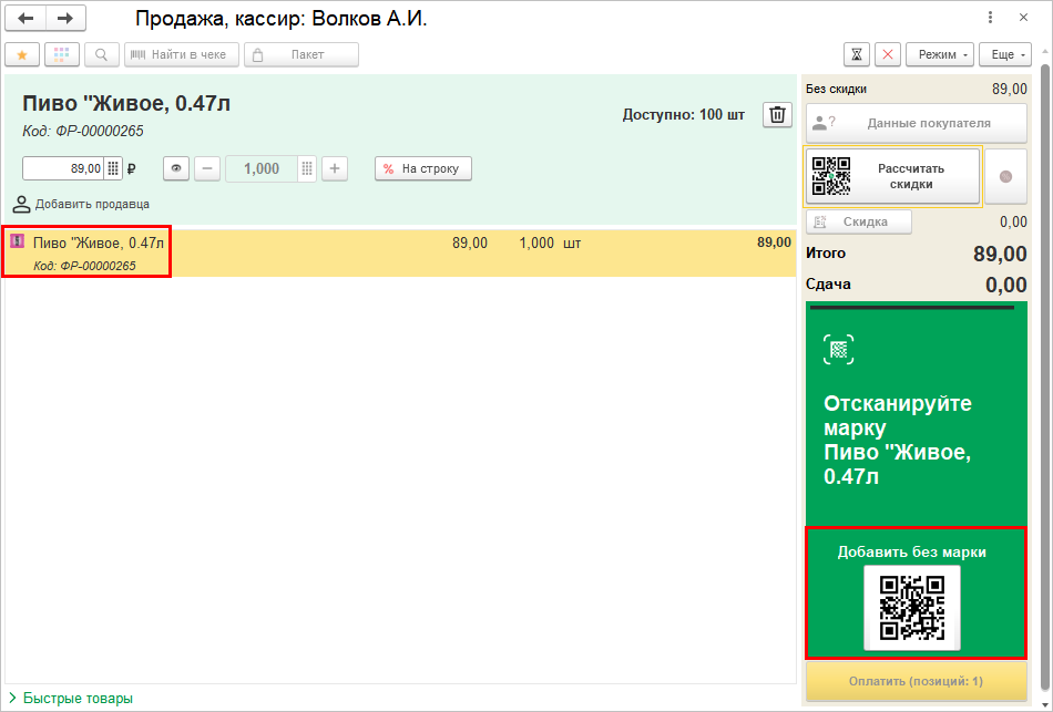 В старом РМК и Чеке ККМ при продаже в розлив пивной продукции или духов, а также сигар поштучно, если для реализуемой номенклатуры вскрыто более одной маркируемой упаковки, то марка будет подобрана автоматически, исходя из даты поступления. Приоритет в подборе будут иметь марки, поступившие на склад раньше.