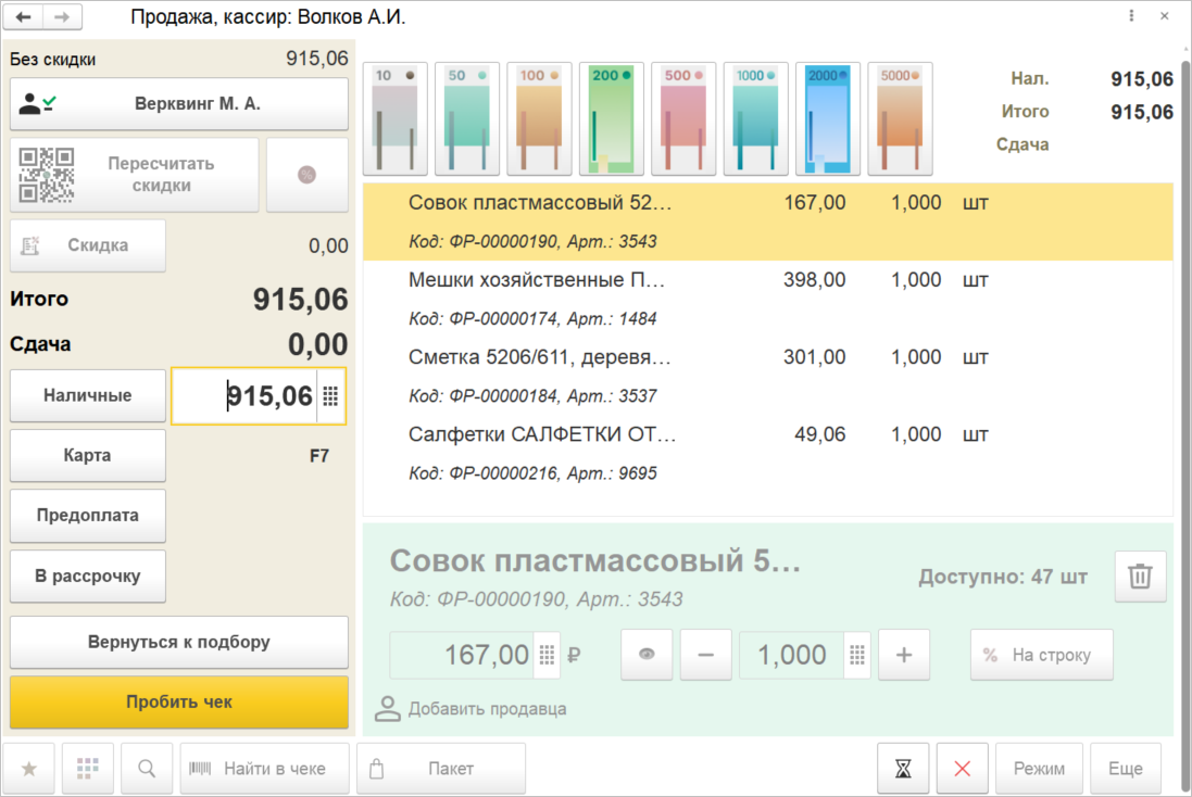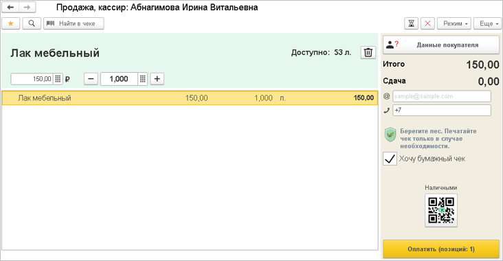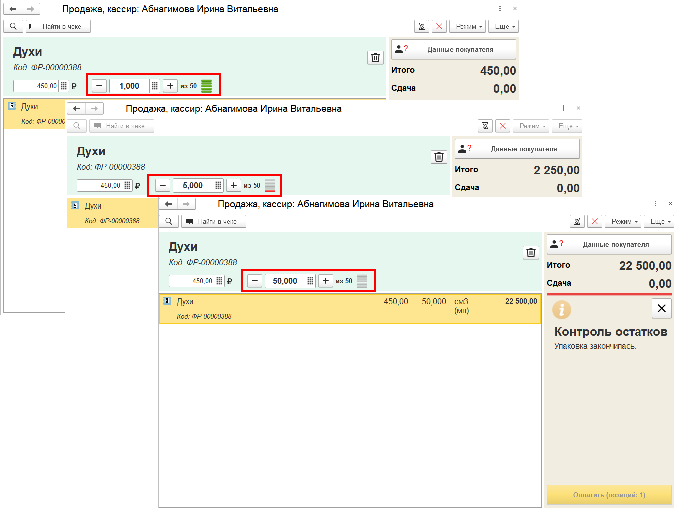 Программа предупредит, если перед пробитием чека количество к списанию превысит остаток. Кассиру потребуется подключить новую упаковку.