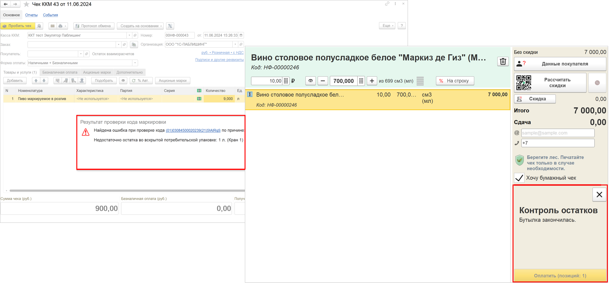 Добавили возможность контролировать остатки товаров при частичном выбытии. Изменения касаются следующих групп товаров: пиво, крепкий алкоголь, духи, сигары и бады. Теперь при оформлении продажи кассир будет видеть остаток продукции в разрезе кода маркировки.