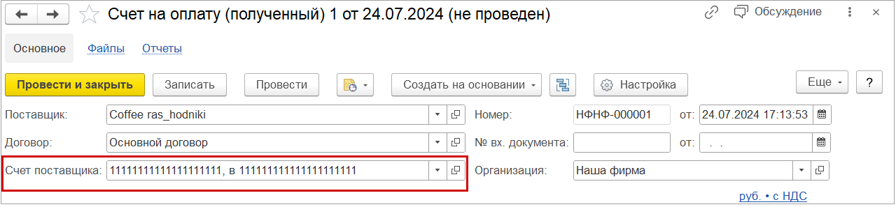 В документ "Счет на оплату (полученный)" добавили банковский счет поставщика. При создании на основании счета платежного поручения банковский счет автоматически заполняется в новом документе.