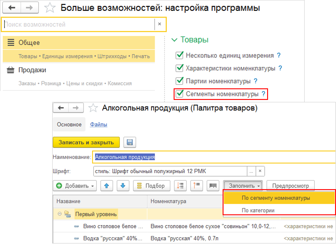 При настройке обмена данными с 1С:РМК, 1С:Кассой, 1С:Мобильной кассой можно установить ограничение: выгружать только товары палитры.