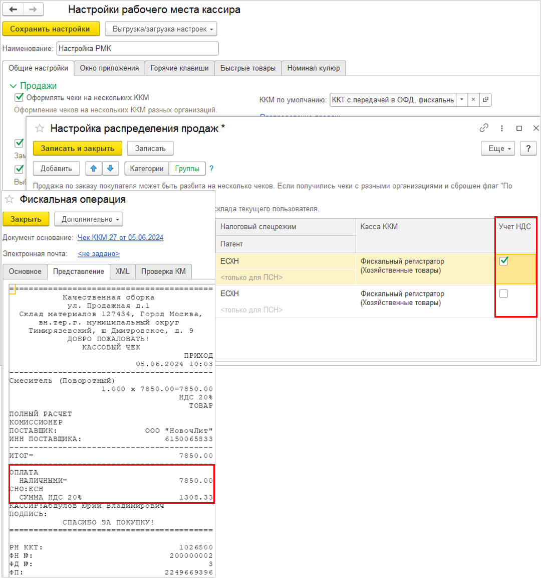 Появилась возможность работать в спецрежиме ЕСХН (единый сельскохозяйственный налог) для плательщиков НДС (налога на добавленную стоимость). Теперь в настройках распределения продаж для ЕСХН можно установить признак "Учет НДС". Чеки с таким распределением будут пробиваться с ЕСХН, учитывая НДС.