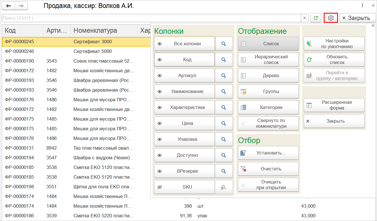 Форма уточнения открывается только для частично выбывающей продукции, для остальных товаров откроется стандартная форма подбора и проверки.