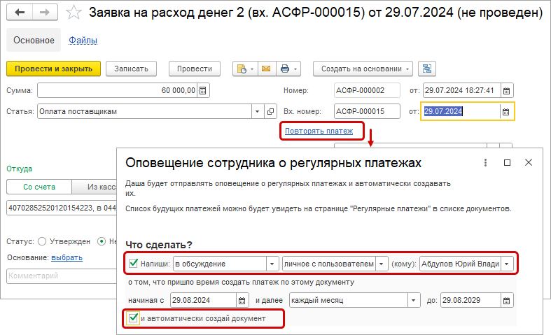 Добавлена возможность использовать для автоматизации рутинных операций ассистента Дашу. Ассистент помогает настроить регулярные платежи, оповещает сотрудников о достижении минимальных остатков на складе, сообщает об изменении состояния заказа покупателя или смене ответственного в заказе покупателя, информирует клиента и сотрудника о начисленных или списанных бонусах.