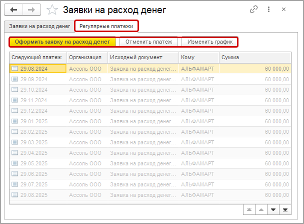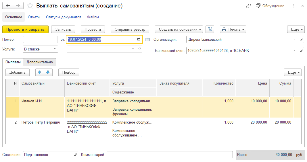 Табличная часть заполнится всеми имеющимися документами. При необходимости список также можно откорректировать вручную.