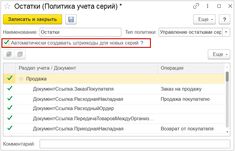 Поиск серий по штрихкодам стал удобнее, теперь при создании серии может быть автоматически создан и штрихкод, если в политике учета серий был установлен флажок "Автоматически создавать штрихкоды для новых серий". Новую возможность можно использовать, например, только для товаров, которым требуется печать этикеток с сериями. Добавили возможность массового создания штрихкодов в списке серий.