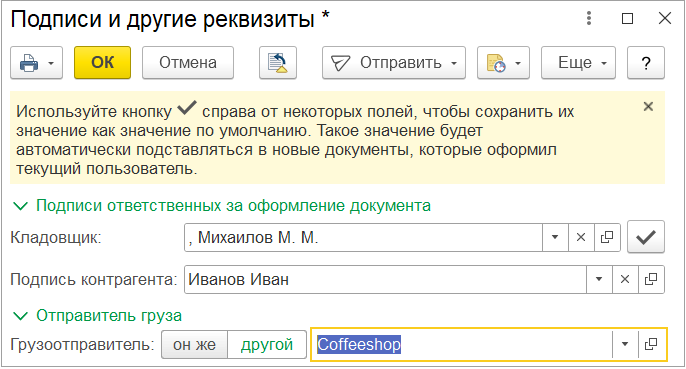 Создание счетов-фактур. Работать с документами передачи между организациями стало удобнее. Теперь появилась возможность автоматически формировать счета-фактуры при создании документов передачи, используя переключатель "Сформировать счета-фактуры автоматически" в помощнике формирования документов. При его включении дополнительно к документам передачи создаются счета-фактуры. В списке документов отображать статус счета-фактуры. По умолчанию колонки не отображаются, возможность включается командой "Изменить форму" в меню "Еще". Отображаемые статусы помогут понять необходимость выставления или обновления счетов-фактур, также по статусам можно делать отбор.