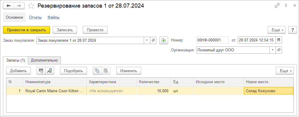 Появилась возможность резервировать товары другой организации не только в "Заказе покупателя", но и с помощью документа "Резервирование запасов", созданного на основании заказа.