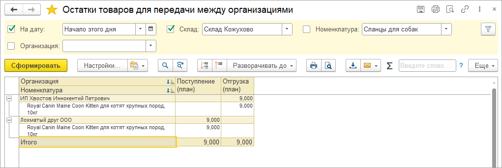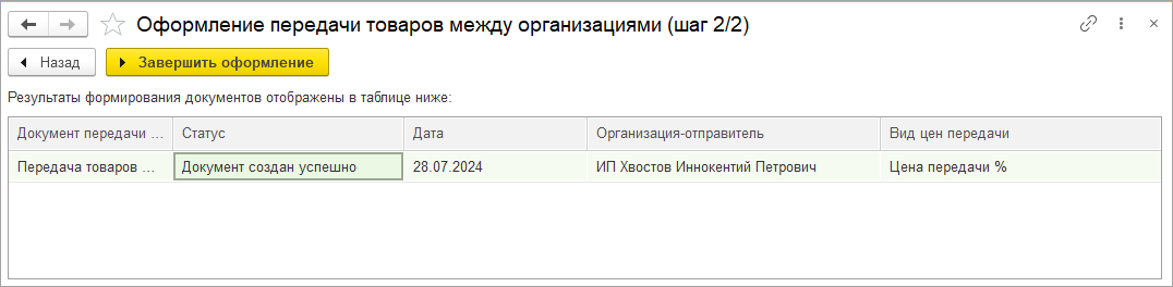 В конце периода с помощью помощника передачи между организациями сформируются документы передачи по данному резервированию.