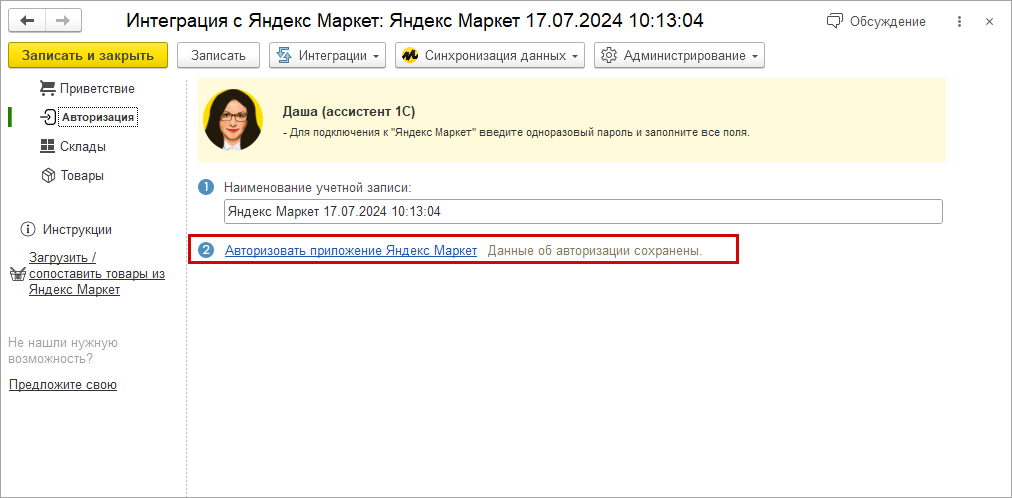 Начните настройку интеграции и авторизуйте приложение Яндекс Маркет по ссылке.