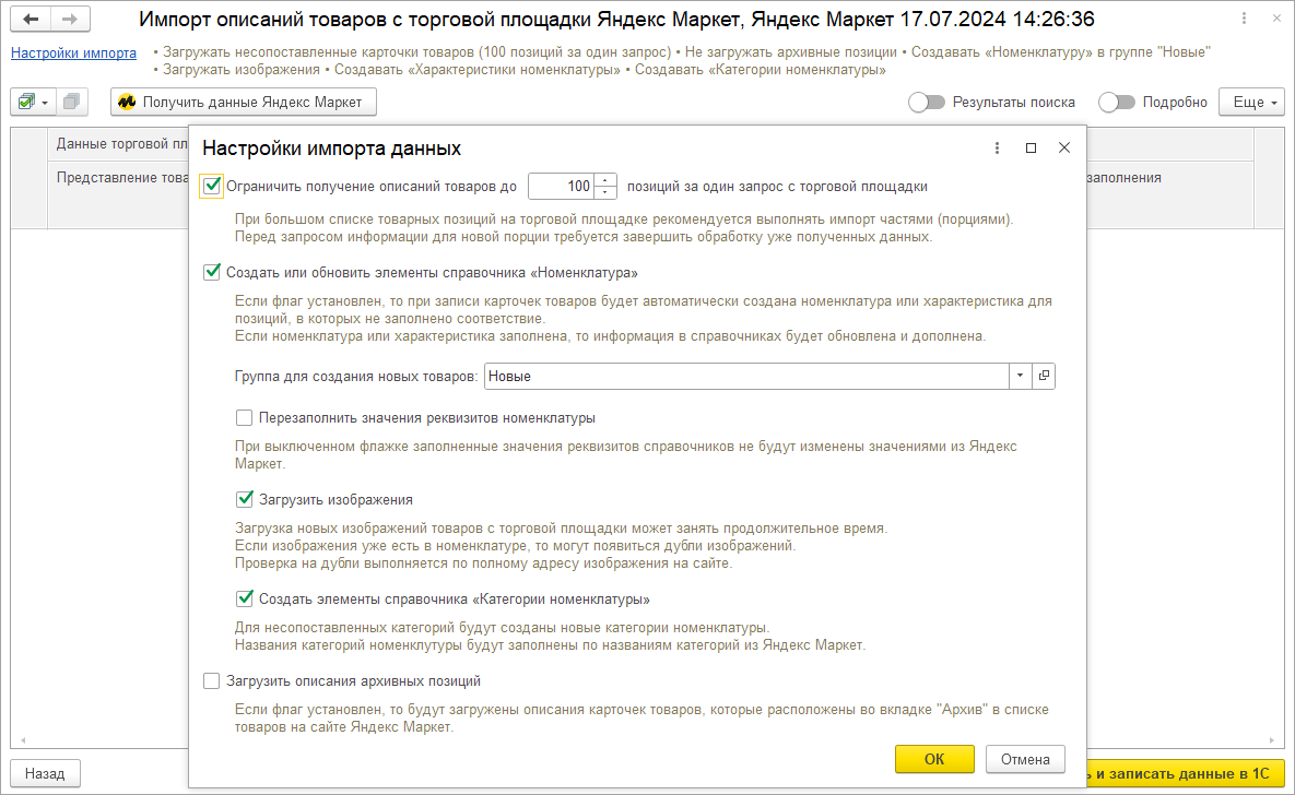 Товары c Яндекс Маркета теперь можно загружать в программу. Для новых товаров автоматически создаются карточки с описаниями, штрихкодами и изображениями.