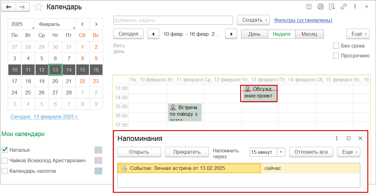 Встреча отразится в календаре. Если настроить напоминание в поле "Напомнить", программа оповестит о начале видеозвонка.