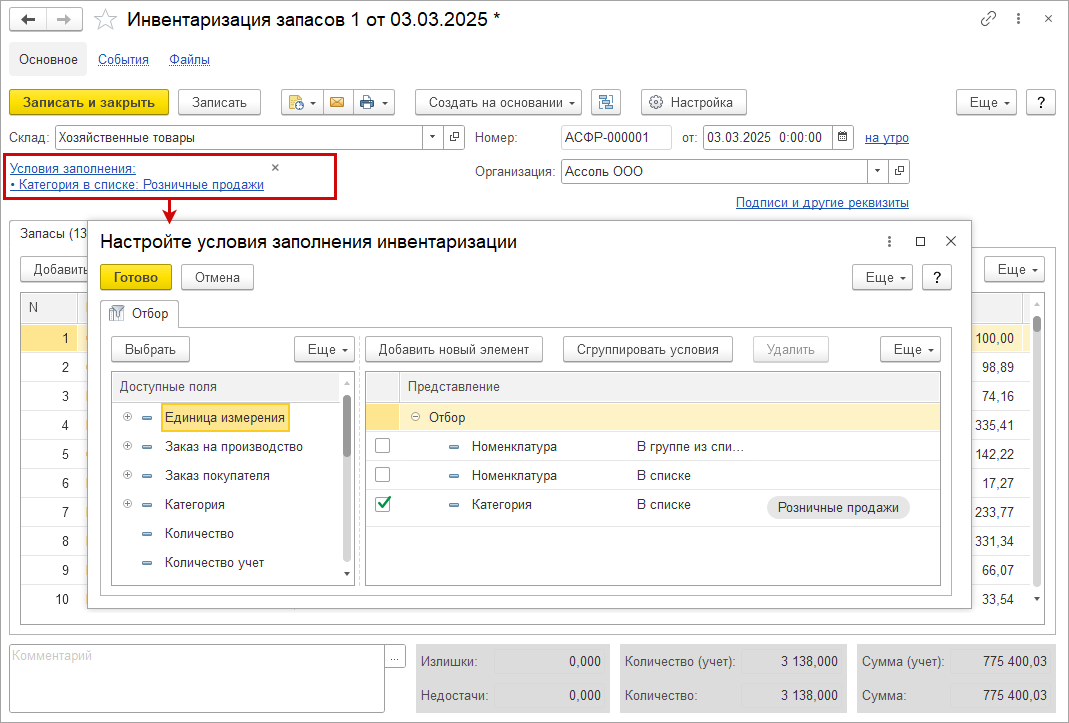 При проведении инвентаризации теперь можно выбрать склад и автоматически заполнить таблицу запасами с разделением по ячейкам. Больше не нужно создавать отдельный документ инвентаризации для каждой ячейки.