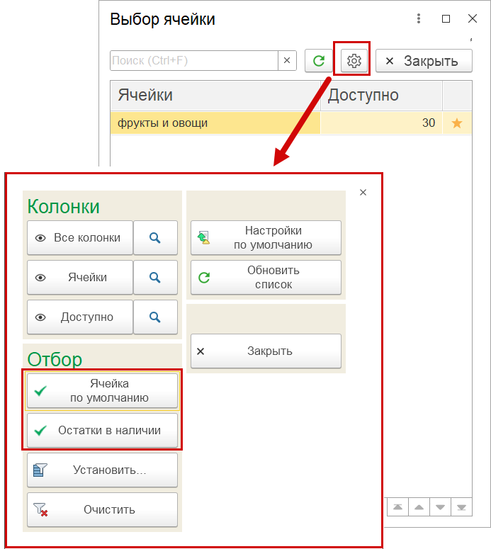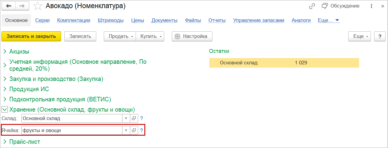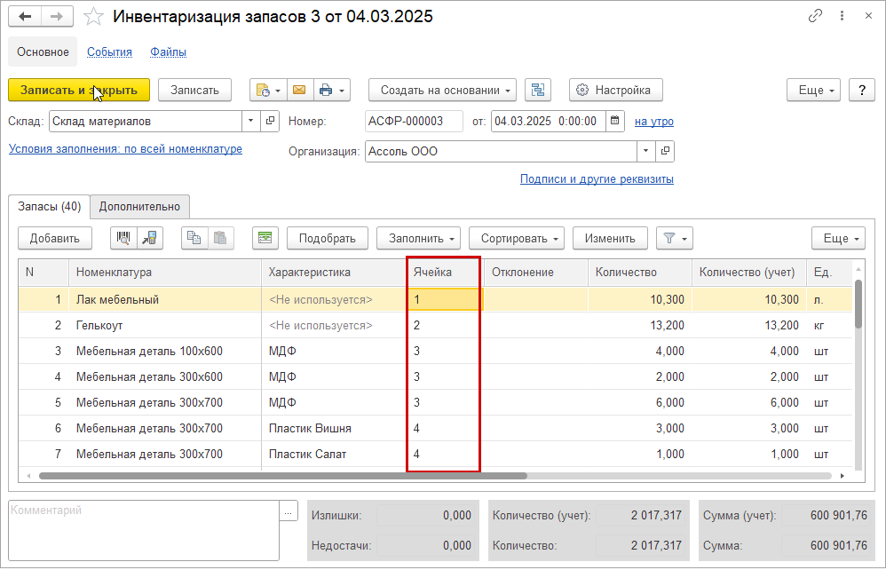 При вводе на основании инвентаризации складских актов "Оприходование запасов" и "Списание запасов", информация о ячейках будет перенесена в них автоматически.