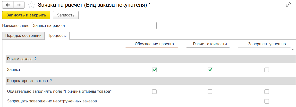 Для режима заявки система предложит выбрать состояния. Выберите состояния для режима заявки, установив соответствующие флажки.