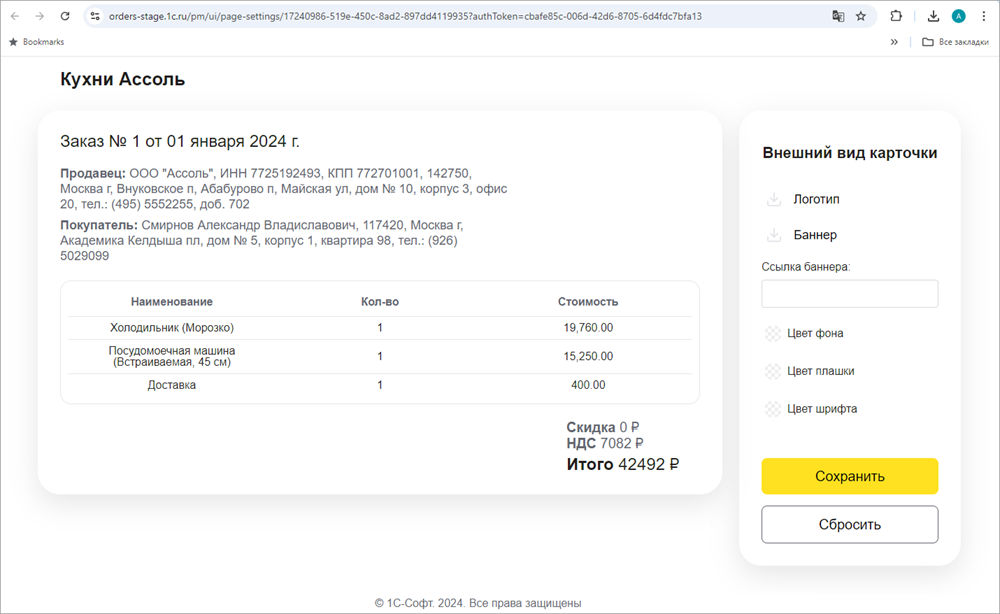 По ссылке на заказ покупатель перейдет на страницу с содержанием счета и может быстро оплатить его через систему быстрых платежей (СБП). После загрузки оплаты формируется документ "Операция по платежной карте" со способом оплаты "СБП".