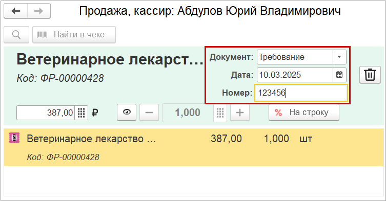 Для поддержки требований законодательства в карточке товара группы "Ветеринарные препараты" появилась возможность установить обязательность заполнения даты и номера документа (рецепта).