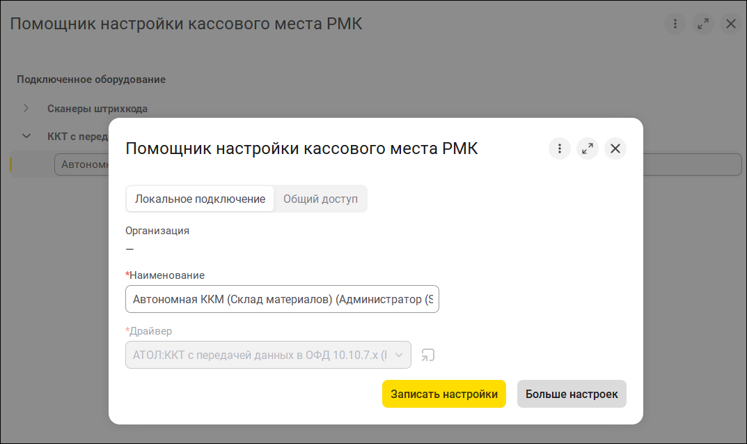 Сделали карточки оборудования более наглядными: теперь статус «Подключено» сразу виден по зеленому цвету. Это помогает быстро оценить готовность техники к работе. Дополнительно вы можете гибко управлять параметрами работы, включая или отключая опции сверки с ОФД и использования без физического подключения — это повышает контроль над процессами и адаптирует систему под ваши задачи.