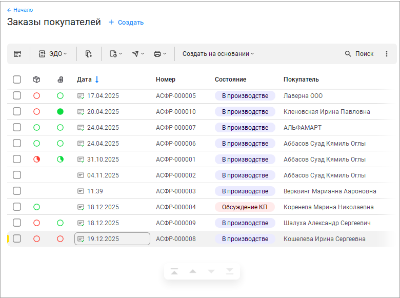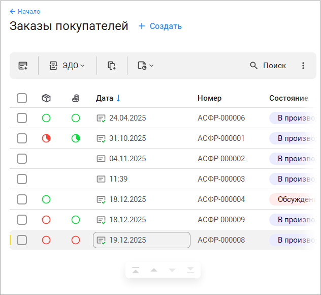 Рассмотрим изменения на примере списка документов "Заказы покупателей".