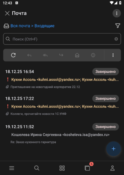 Строки списков отображаются в виде карточек, по которым быстро можно изучить основное содержимое документа без перехода.