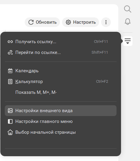 "Настройки" - подраздел "Персональные настройки" - "Вариант интерфейса".