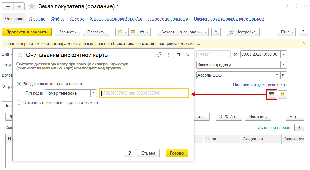 Улучшили работу с дисконтными картами в документах. Теперь найти дисконтную