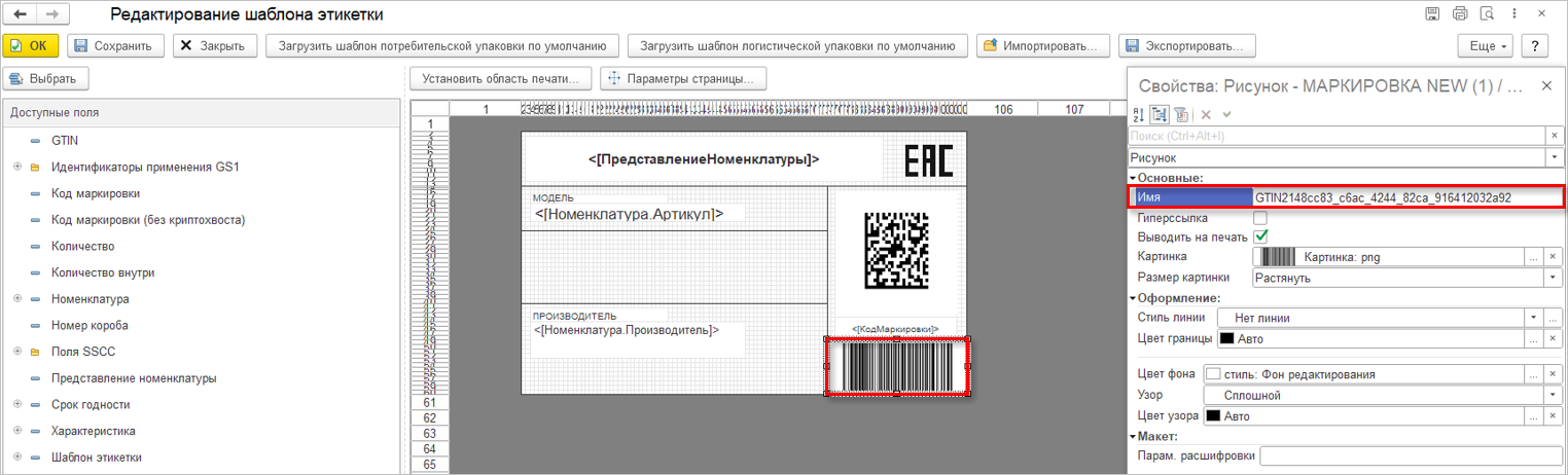 штрихкода. Для этого необходимо на форму данной этикетки поместить рисунок