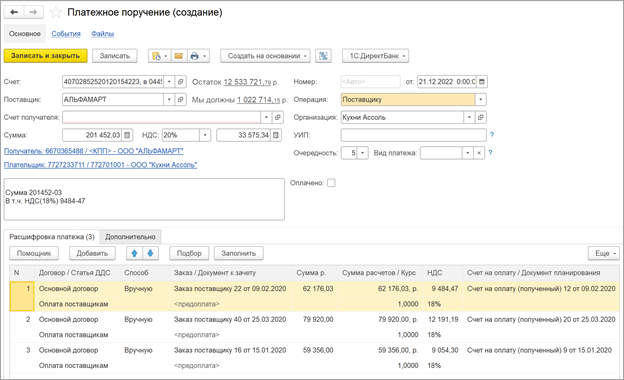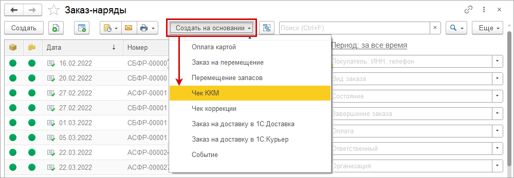 Теперь при создании цепочки документов на основании, начиная с заказа покупателя, значение реквизита "Проект" переносится и заполняется во всех документах. Такое заполнение действует и для документов с проектами в табличной части.