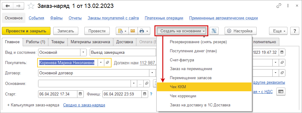 Значение, указанное в поле "Услуга доставки" конструктора, будет использоваться для автозаполнения поля "Услуга доставки" во всех документах "Заказ покупателя", загруженных из "Кабинета клиента".