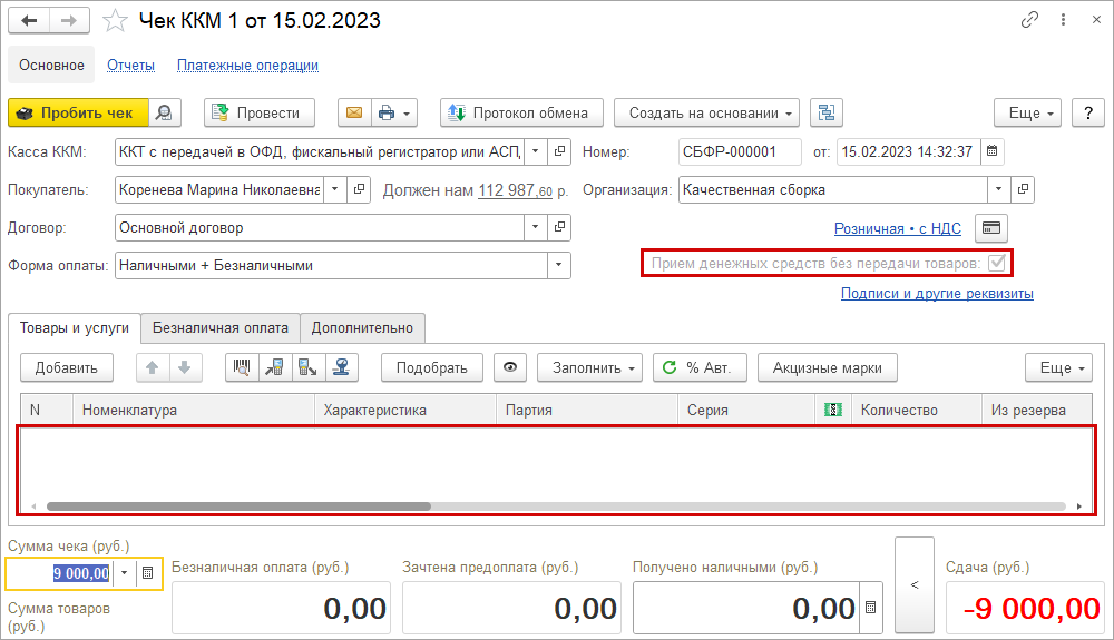 Указание кодов маркировки при оформлении чека на возврат носит рекомендательный характер, так как бывают ситуации, когда марка повреждена или вовсе отсутствует. В связи с этим в новой версии программы была поддержана возможность пробития чека на возврат маркируемой продукции без указания кода маркировки.