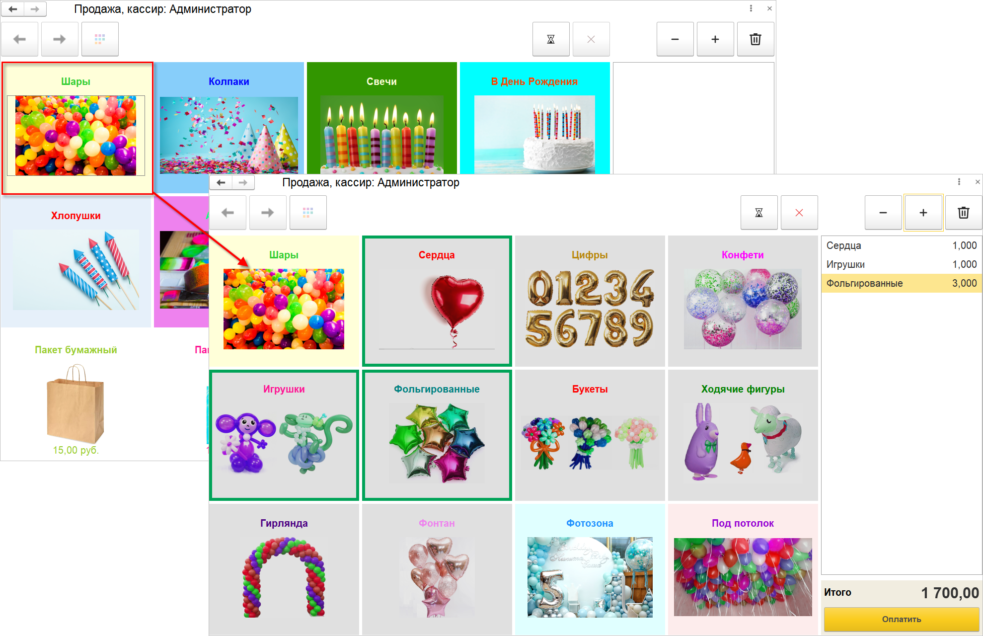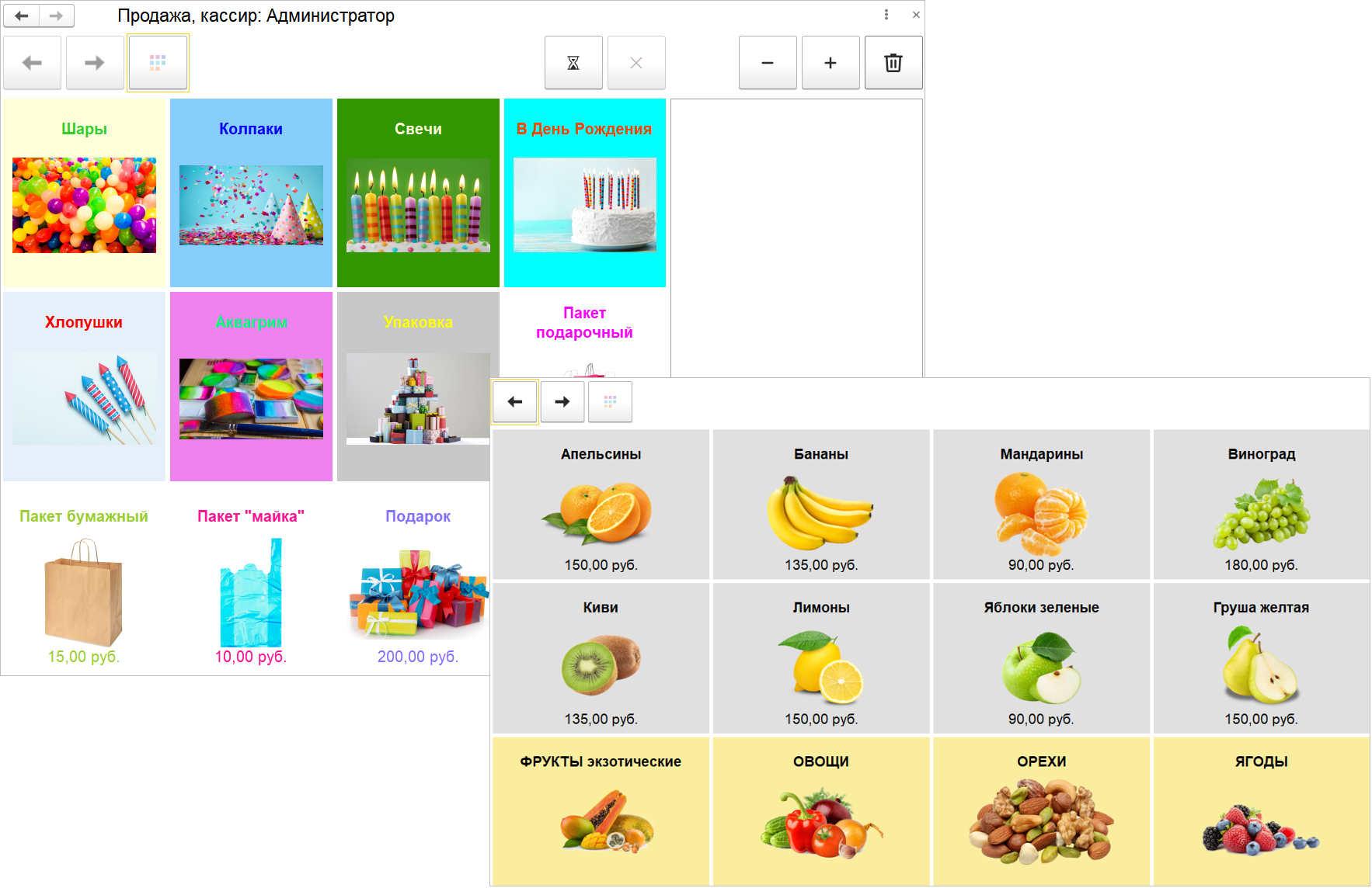 Улучшили информативность и гибкость настройки панели быстрых товаров. Также теперь можно использовать категории товаров с вложением, удобно перемещаясь по папкам.