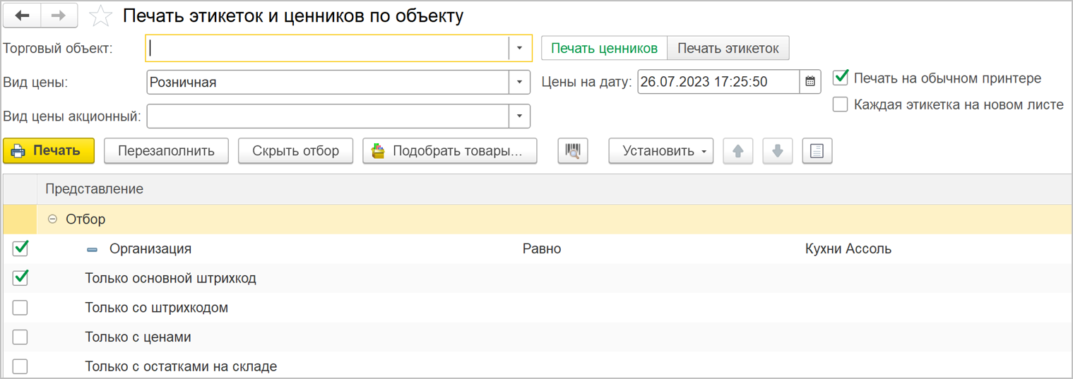 Для отбора доступны данные по строке или шапке документа, а также итоги по табличной части.