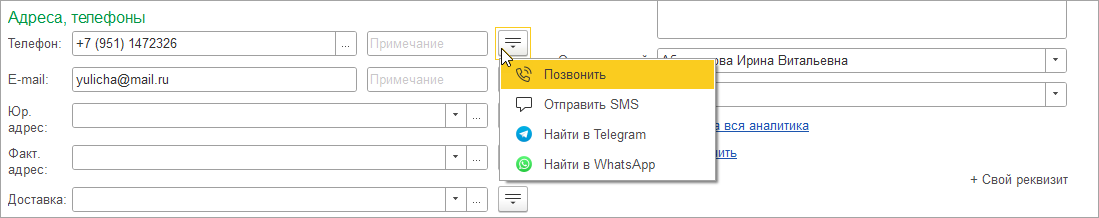 Например, для телефона теперь можно не только позвонить, но и написать sms-сообщение.