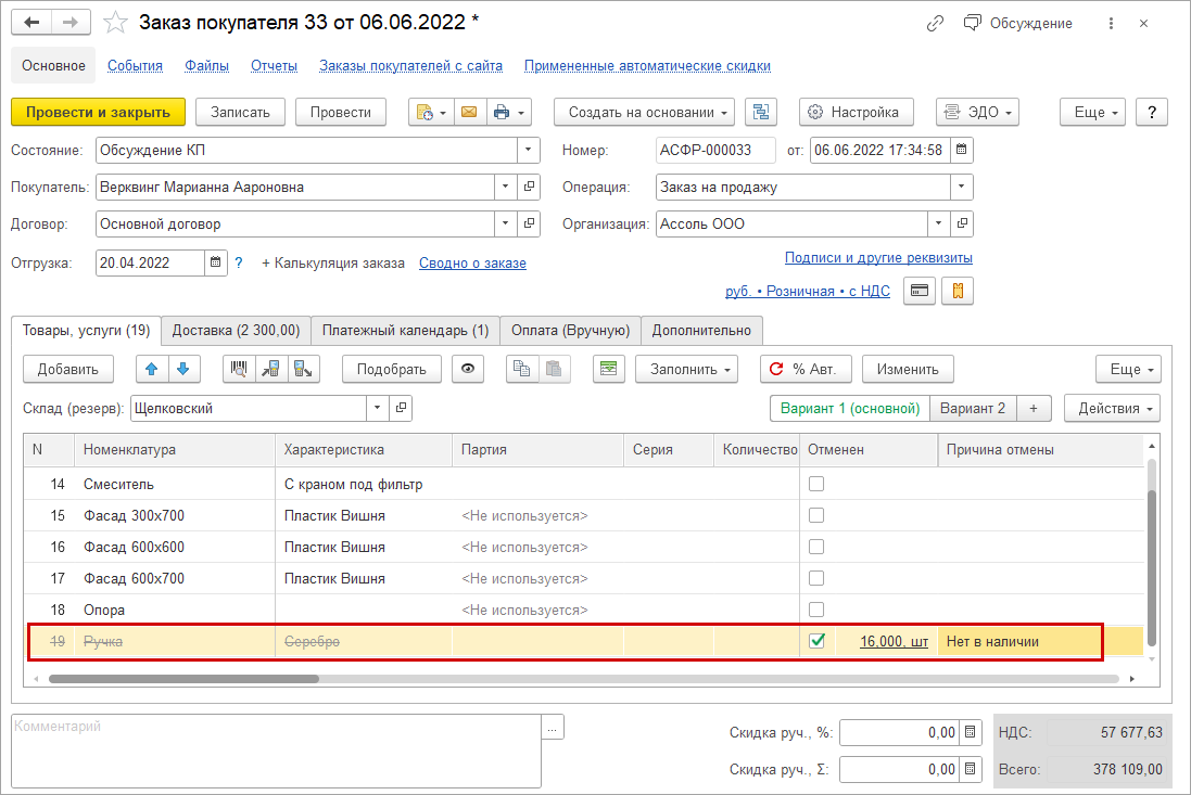 Работать с заказами покупателя, поставщика и заказ-нарядами становится удобнее. В новой версии появилась возможность корректировать состав заказа, сохраняя историю корректировок. Вы можете отменить определенные строки заказа, например, если клиент отказался от части товара или поставщик не привез заказ полностью. Информация об отмененных позициях сохраняется, но не учитывается в итоговой сумме. Корректировка позволит завершить работу с заказом и сохранить информацию об отмене.