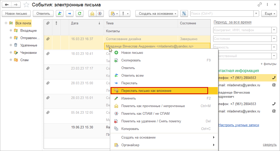 Работать с почтой в программе становится быстрее и удобнее, появилось больше возможностей для ведения переписки с клиентами.