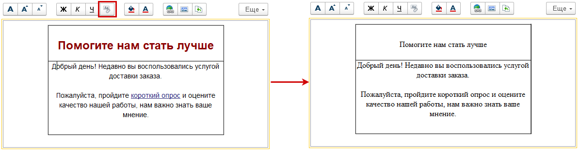 Очистка форматирования позволяет удалить оформление текста (выделение жирным, шрифт, заливку и тп.).