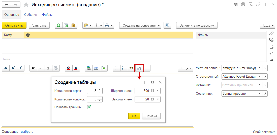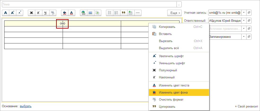 Размер таблицы и размер колонок/строк также можно настраивать курсором, перетягивая границы. Таким же образом можно настраивать и размер изображений в письме.