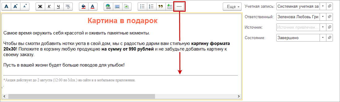 текст письма добавляется горизонтальная линия. Такой элемент оформления позволяет разделить текст на части и упрощает восприятие при чтении.