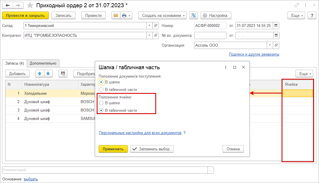 Аналогичные подсказки появятся, если в документе "Комплектации запасов" используется операция "Разборка", а алкогольная продукция находится в шапке документа, например пиво в кеге.