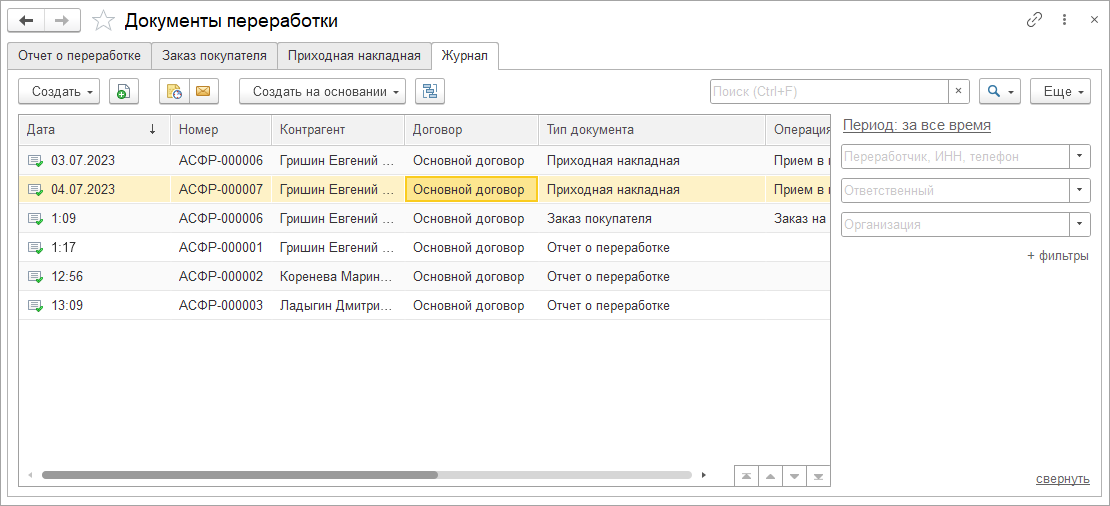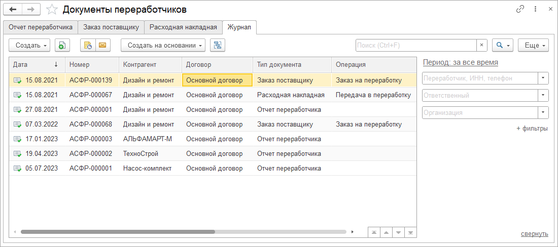 При установленной опции переноса заказов как счетов в 1С:Бухгалтерию переносятся счета по заказам на переработку.