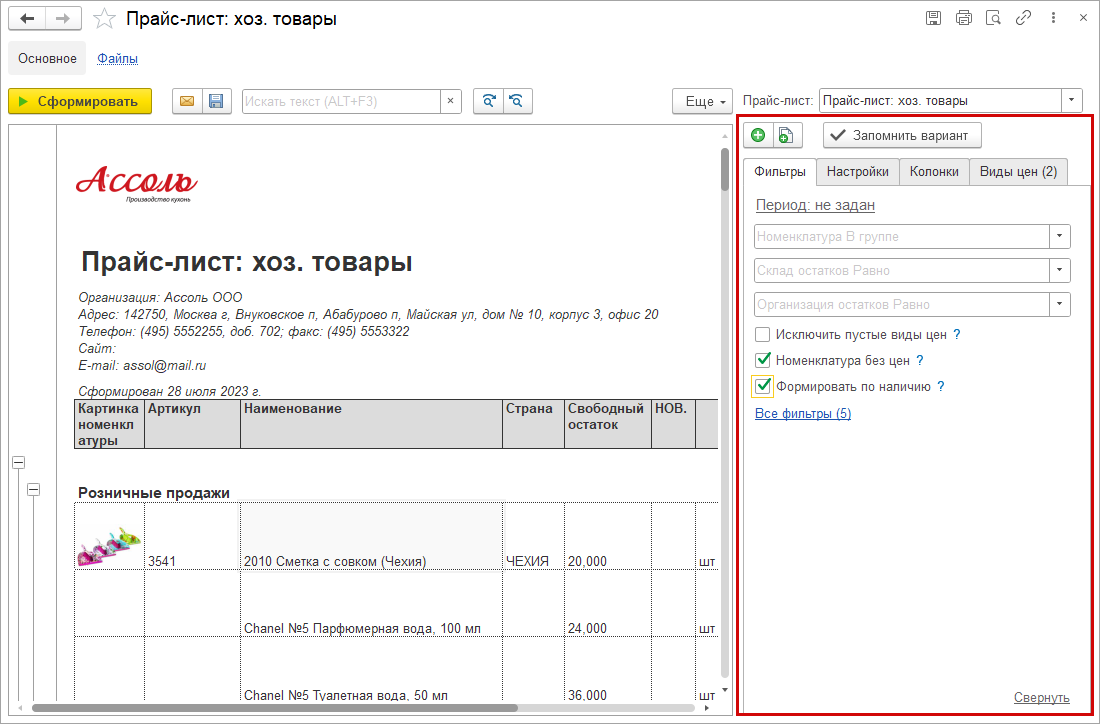 Отображение картинок на формах "Подпись", "Номенклатура", "Характеристика" стало понятнее. На форме подписи, карточки номенклатуры и характеристики номенклатуры скрыты недоступные стрелки пролистывания, добавлена индикация основной картинки, изменена команда с настройками изображения. При удалении основной картинки добавленная последней картинка становится основной. Работа с карточками номенклатуры становится удобнее и позволяет избежать ошибок.