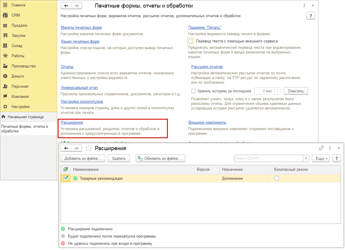 Готовое расширение подключается в разделе Настройки - Печатные формы, отчеты и обработки.