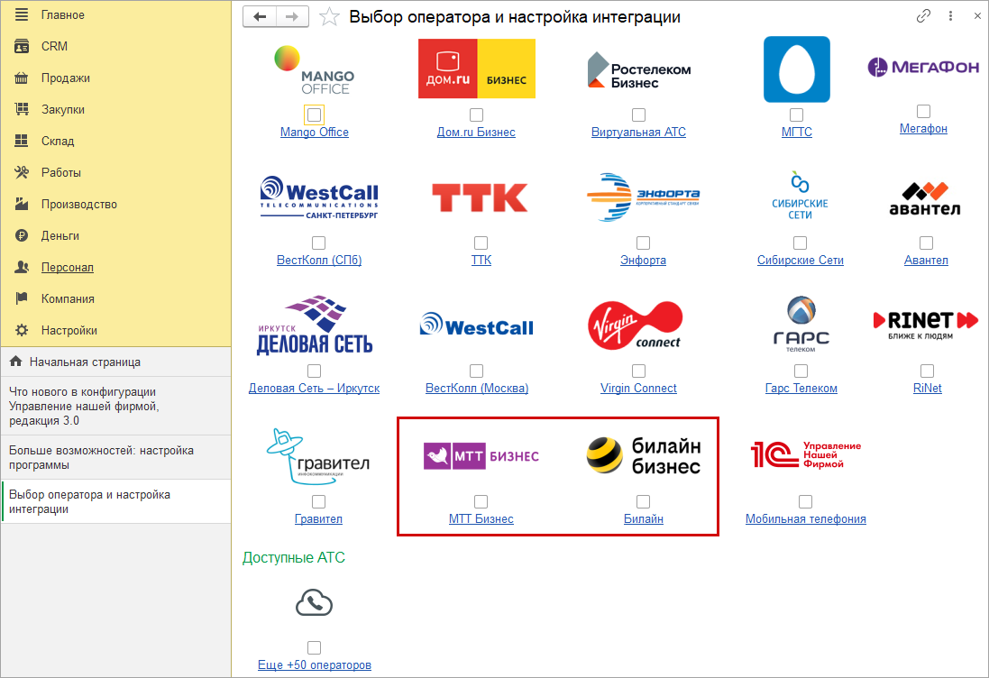Добавили оператора телефонии АТС "МТТ" (Межрегиональный ТранзитТелеком) для приема звонков в программе. Виртуальная АТС от "МТТ" обеспечивает телефонную связь через интернет и полностью заменяет офисную мини-АТС. Новый оператор позволит выбрать наиболее подходящие возможности для решения задач бизнеса.