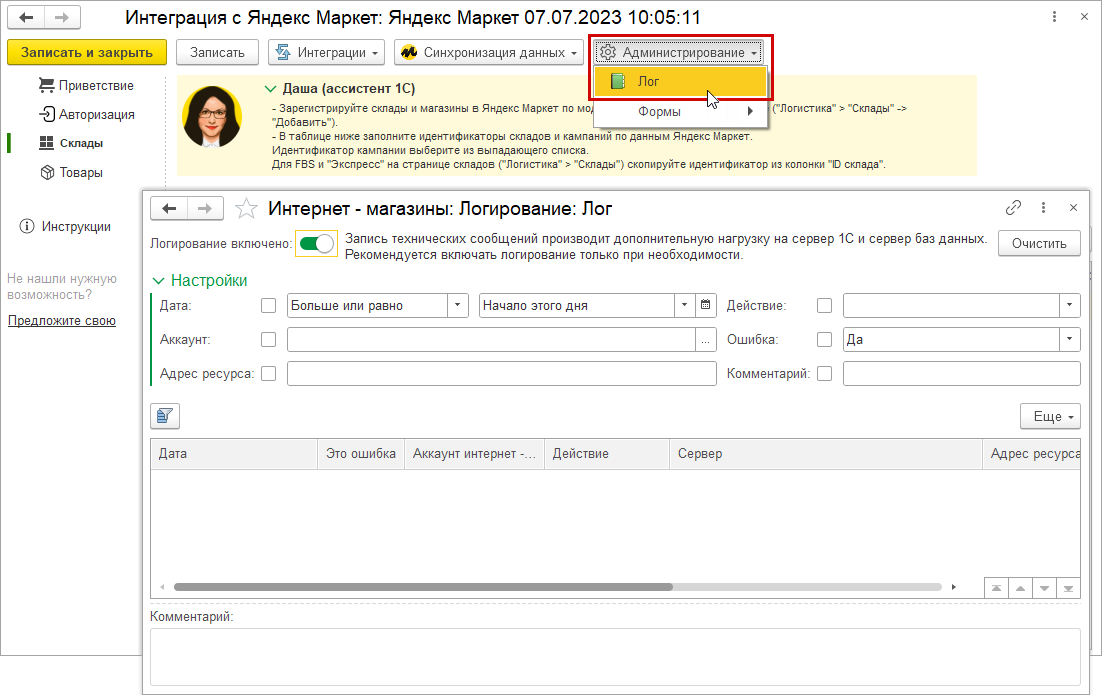 Добавили инструмент для расследования ошибок при работе интеграции - все сообщения об ошибках теперь фиксируются в логи.