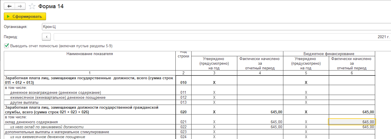 Добавлена возможность расшифровки сумм начислений в отчетах по Форме 14, 14-МО (денежных показателей разделов 1, 3, 4).